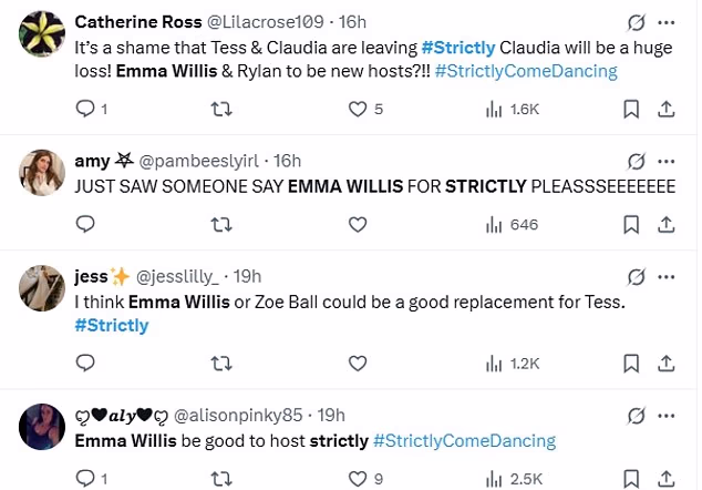 Who will be the next Strictly hosts? The iconic pairings predicted to take to the dancefloor after Tess Daly and Claudia Winkleman announce their departure